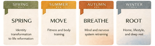 Four seasons. Three months each. Live. Move. Breathe. Root.